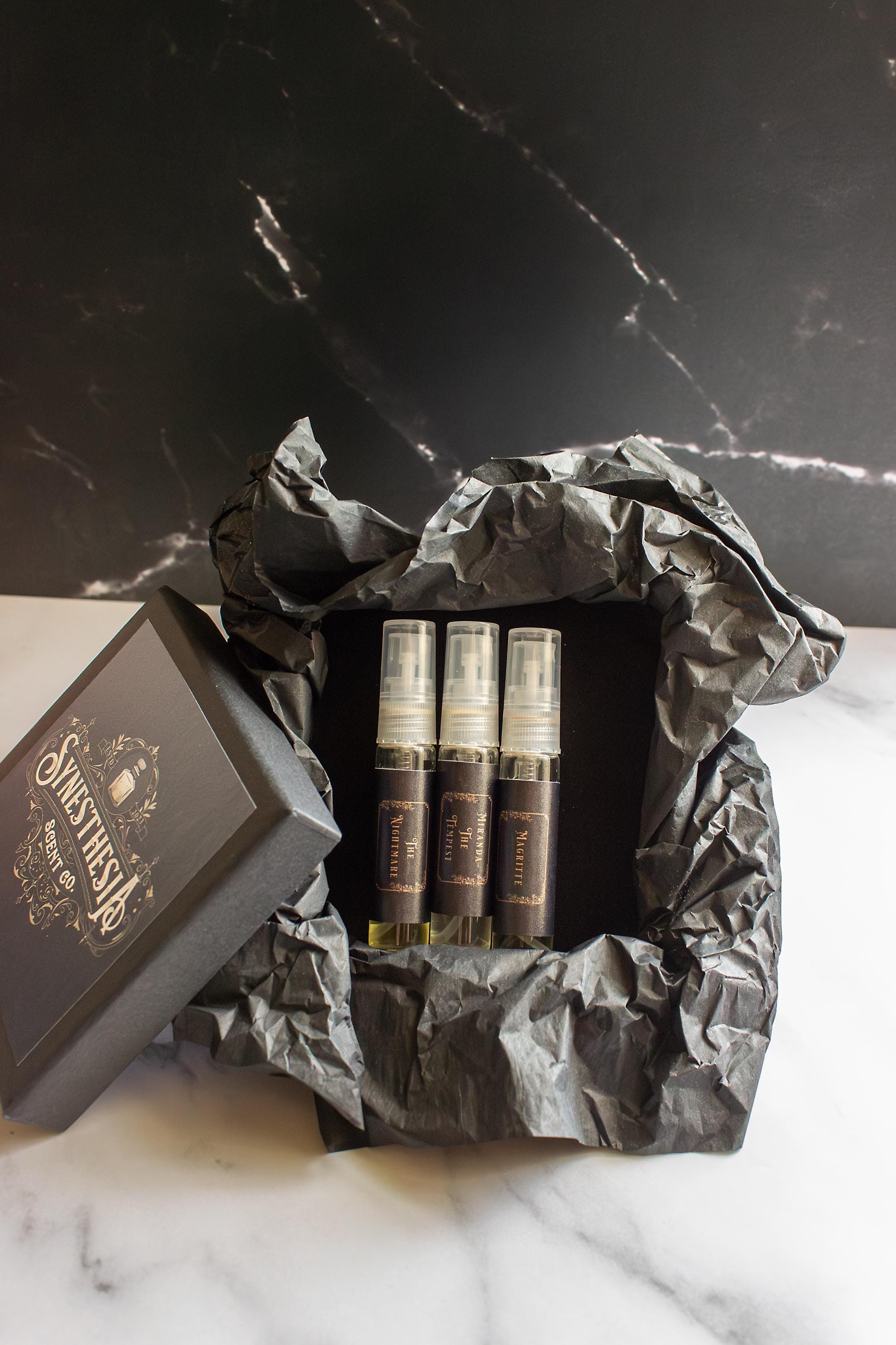 A: Never intentionally. Everything sent through the Vault is a real Synesthesia perfume — not a reject, just a secret. You might get a rare vaulted scent, an unreleased prototype, or something that didn’t get the spotlight it deserved.