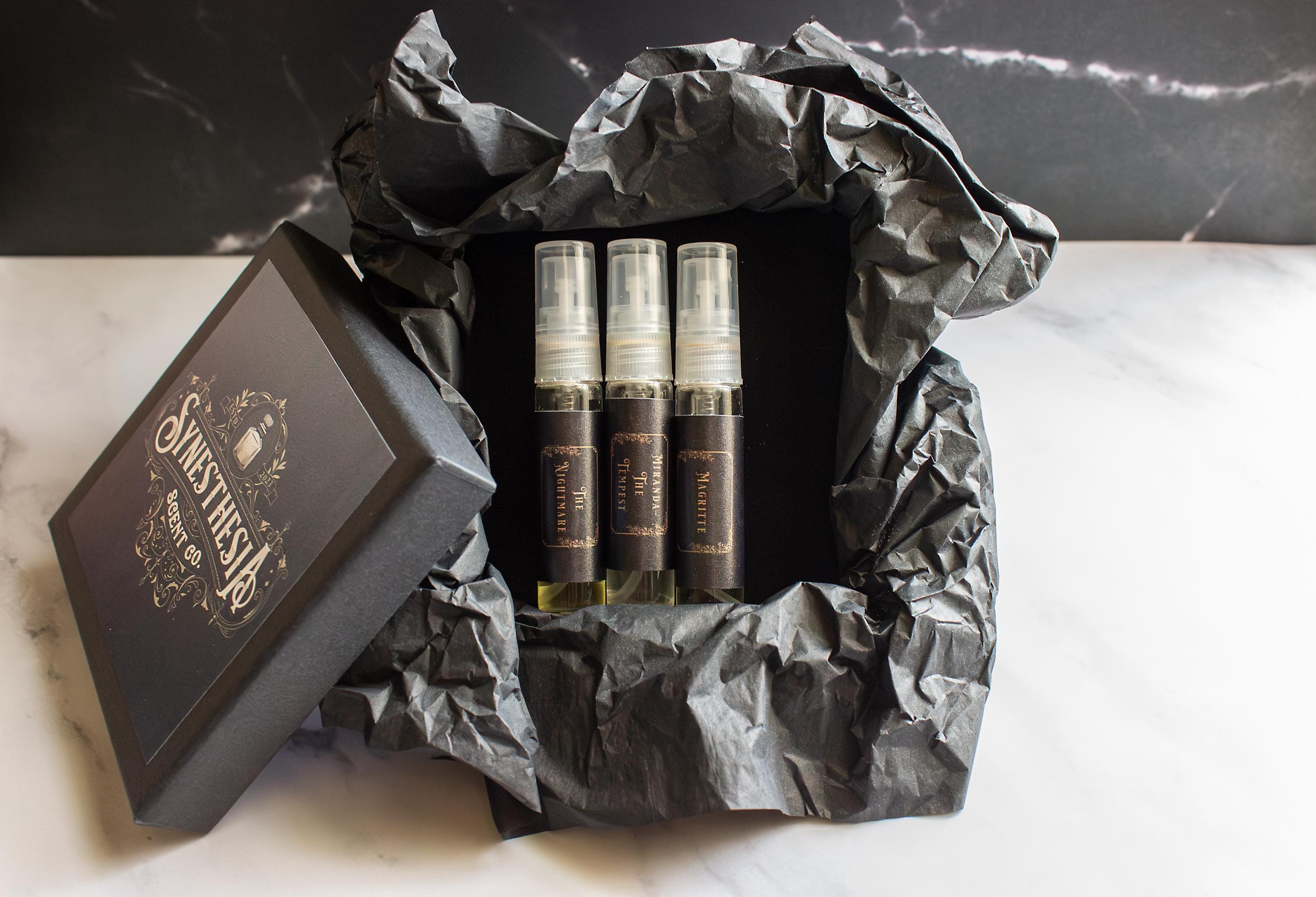 A: It’s a rotating offering of mystery perfume samples pulled from Synesthesia’s hidden shelves — excess vials, discontinued blends, overpours, and underloved experiments. You won’t know what you’re getting. That’s part of the charm.